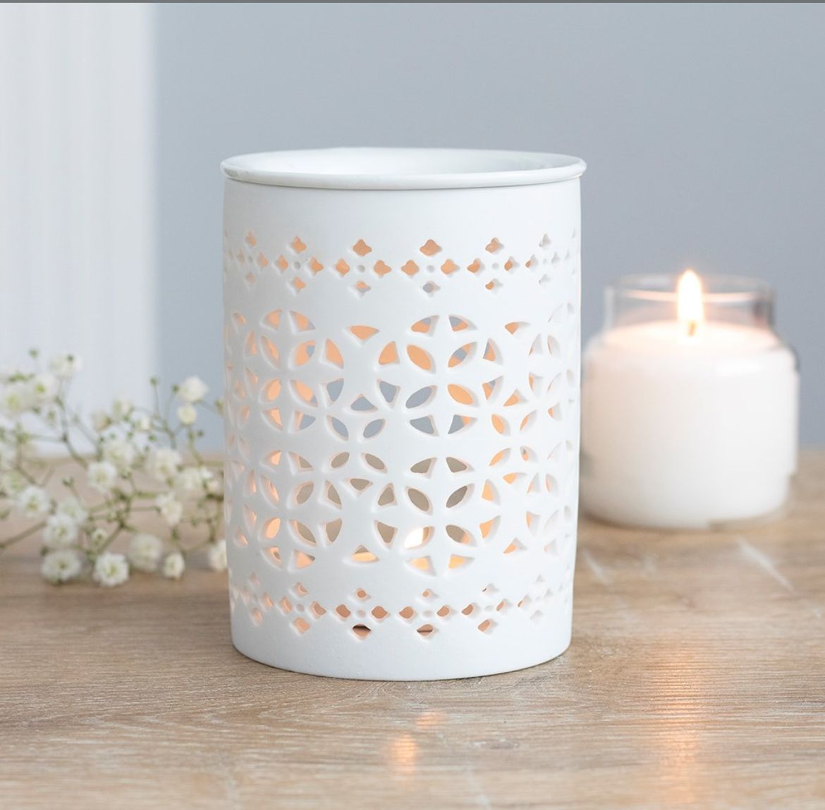 Este quemador con diseño de celosía transforma cualquier espacio con su juego de luces y sombras. Cuando está encendido, la luz se filtra a través de los patrones creando un efecto cálido, relajante y sofisticado, ideal para ambientar rincones especiales, cenas, momentos de relax o simplemente para hacer tu hogar más acogedor.